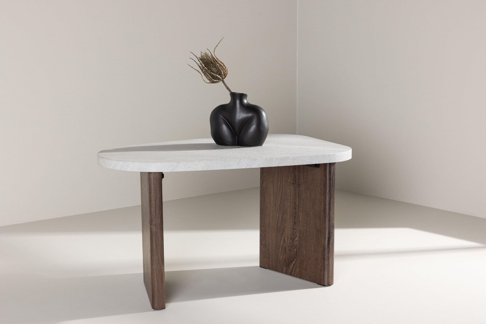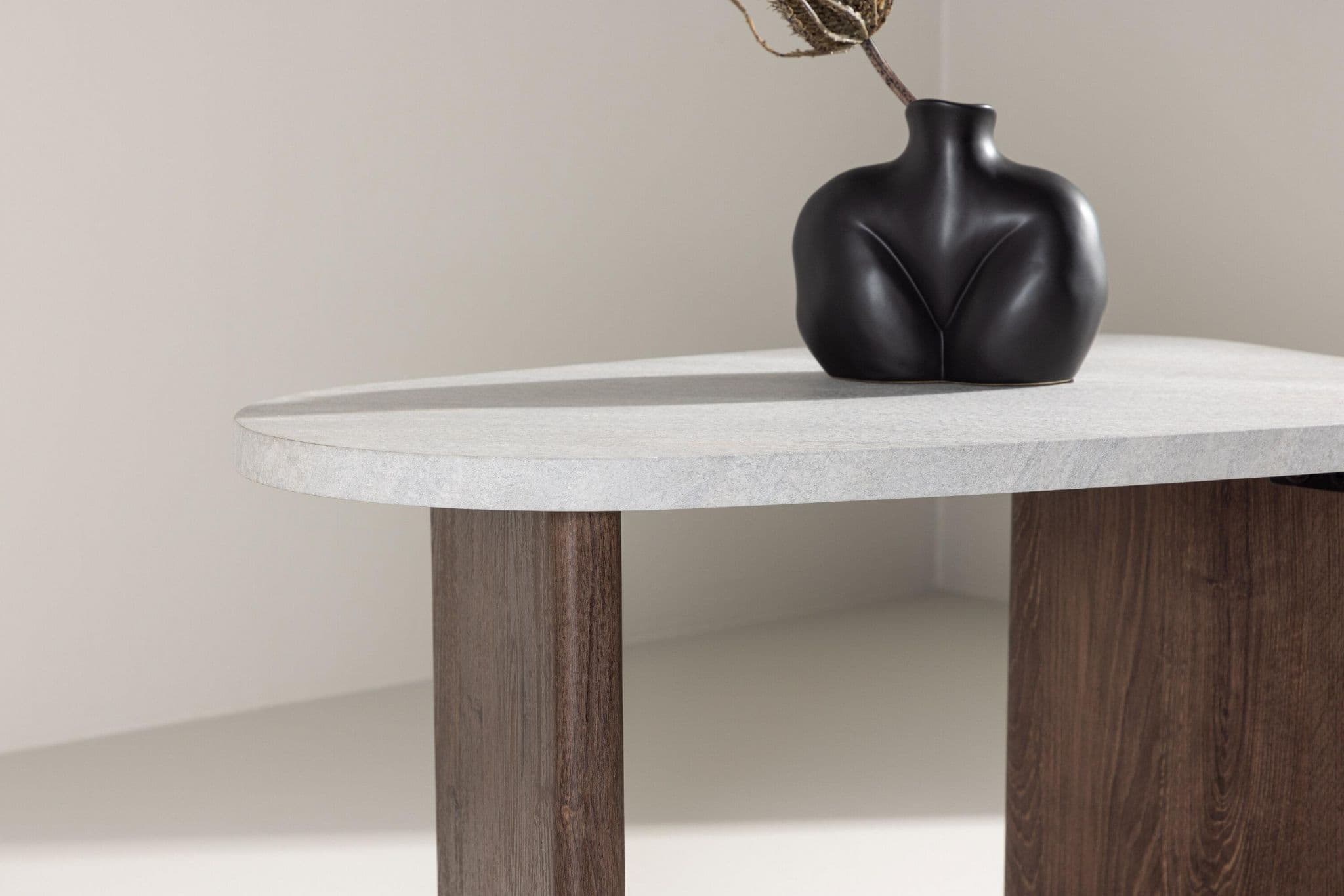 Discover the perfect combination of style and functionality with our elegant side table, Grönvik. With dimensions of 70x45 cm, this side table is the ideal addition to your home. With ample space to place your favorite book, a cup of coffee, or other everyday items.Grönvik side table boasts a sophisticated design with a tabletop in light gray concrete finish, adding a modern touch to any room. Its elegant legs in mocca-colored MDF perfectly complement the industrial feel.This side table is not only beautiful to look at, but also practical with its compact size and versatility. Use it as a side table next to your sofa or bed, as a reading nook, or even as an elegant support for your favorite decoration.With Grönvik side table, you get not only a stylish piece of furniture but also a practical and versatile companion for your daily life. Give your home the style and functionality it deserves with Grönvik side table.